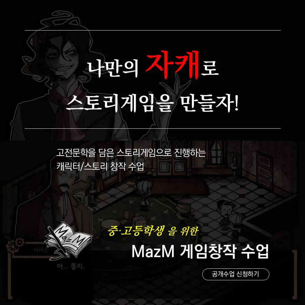 본 수업을 통해 MazM Academy의 ‘게임창작 수업’의 핵심적인 내용을 경험하실 수 있습니다.